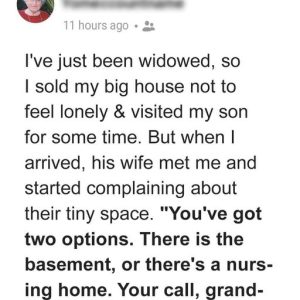 I’ve just been widowed, so I sold my big house not to feel lonely and visited my son for some time. But when I arrived, his wife…